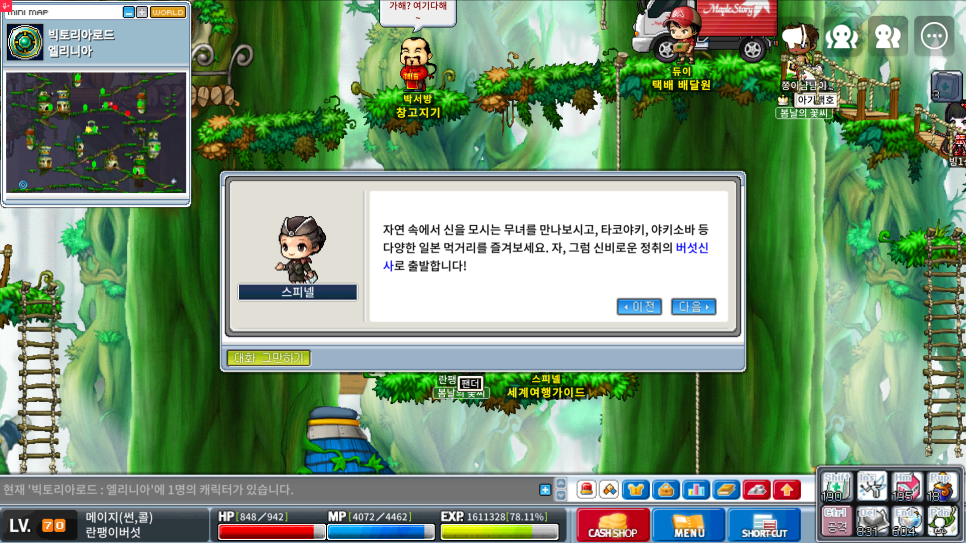 세계여행 스피넬 → 버섯신사(일본)으로 가는 화면 예시